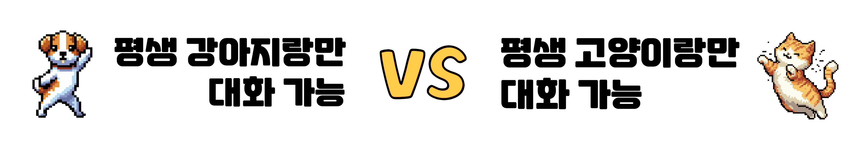 저는 평생 고양이랑만 대화 가능을 선택하겠습니다. 왜냐고요? 저는 고양이와 함께 산 지 10년째인데요… 아직도 안 친합니다 .. 유일하게 친한 순간이라면 간식 줄 때 물 줄 때? 나이가 10살이 되었지만 아직 스스로 물도 못 마시는 애기랍니다~ 실컷 물 다 주면 그 후에는 모르쇠. 이름을 부르면 대답 없고 말도 안하고 귀만 소리 들리는 쪽으로 쫑긋. 절대 1분이상 만질 수 없어요. 그래서 저는 고양이와 대화가 가능하면 한 발 더 가까워질 수 있겠다는 생각에 고양이와 대화하기를 선택하겠습니다.