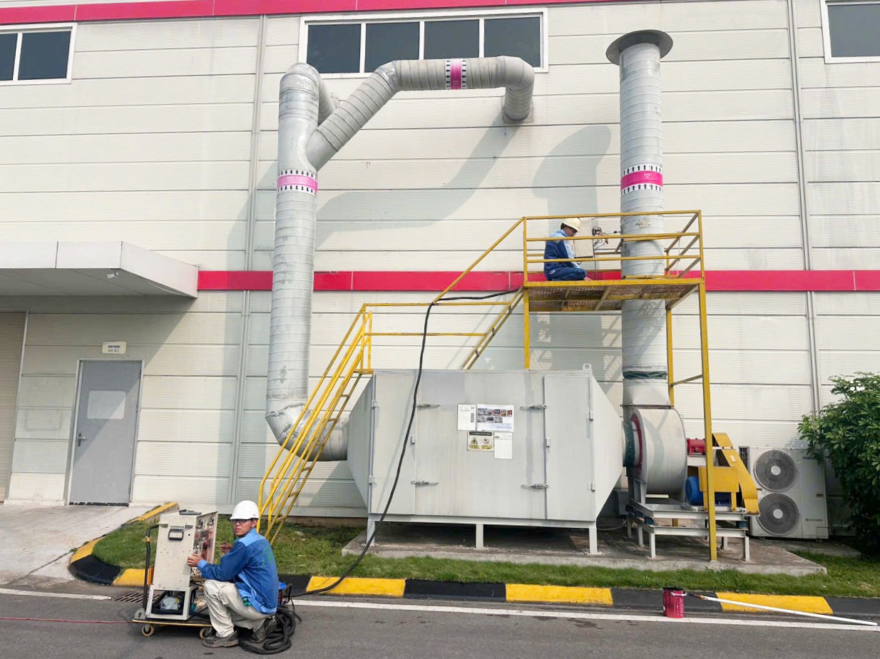[2026년 3월 28일(금)부터 4월 3일(목)] ㈜삼광 베트남사업부에서 환경안전 정기 측정이 진행되었다. 이번 측정은 현지 환경법 준수와 근로자의 건강 보호 및 안전한 작업 환경 조성을 위해 사업장의 잠재적인 유해 요소를 사전에 파악하고 개선하기 위한 목적으로 실시되었으며, 분기별(연 4회)로 운영되는 환경안전 관리 활동의 일환이다. 측정은 외부 전문기관인 CỔ PHẦN MÔI TRƯỜNG ĐẠI NAM이 진행하였으며, 사출, 도장, 레이저, MCT, 조립 등 주요 생산 공정을 포함한 사업장 전반을 대상으로 진행되었다. 배기 및 대기 환경에서는 온습도, 미세먼지, SO₂, NO₂, CO, VOC 등을 측정하였고, 하수 시스템에서는 pH, BOD5, COD, TSS, 황화물(Sulfide), 암모니아, 인(P), 질소(N), 대장균군(Coliform) 등 주요 수질 지표를 확인하였다. 측정 결과는 종료 후 약 15일 이내 보고서 형태로 접수될 예정이며, 이를 기반으로 법적 기준 준수 여부를 검토하고 필요한 개선 조치를 추진할 계획이다. (주)삼광은 지속적인 환경안전 점검과 관리 활동을 통해 글로벌 기준에 부합하는 친환경 사업장을 구축하고, 지속 가능한 경영을 강화해 나갈 방침이다.