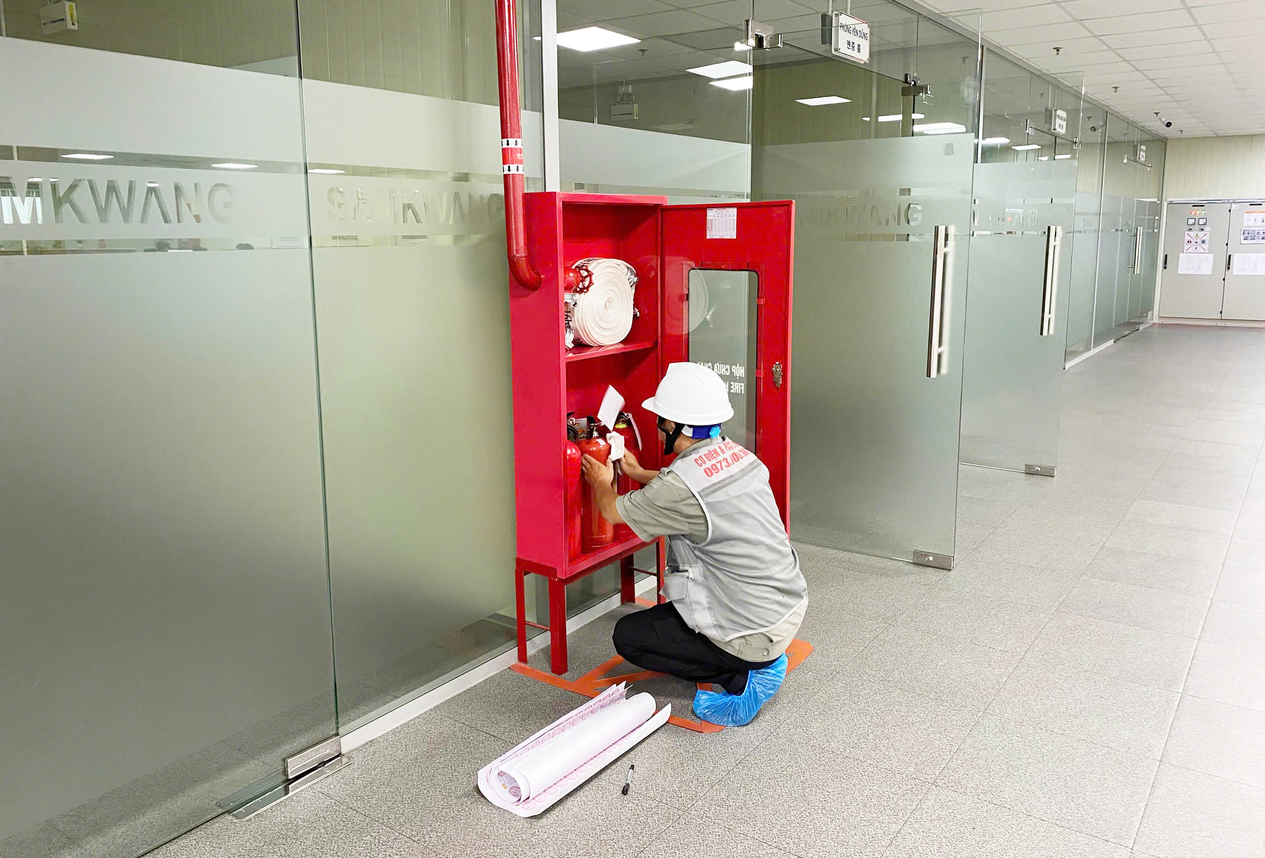 [April 1 (Wed) – April 25 (Sat), 2026] Samkwang Co., Ltd.’s Vietnam Business Division conducted regular fire safety system inspections and maintenance. This inspection was carried out to enhance fire prevention and safety management standards at the facility and was conducted in collaboration with the external specialist firm, KỸ THUẬT CÔNG NGHIỆP BÌNH AN Co., Ltd. The main items inspected included detection equipment such as fire alarm panels and smoke/heat detectors, as well as core response equipment such as sprinkler systems, fire hydrants, and fire pumps. Additionally, functional inspections and minor repairs were performed on evacuation equipment, such as emergency exit signs and emergency lighting, as well as special fire suppression systems, including gas fire extinguishing systems. Through this maintenance, the company verified the proper operation of key equipment and completed repairs on certain systems, thereby enhancing the reliability of its response capabilities in the event of an emergency. Samkwang Co., Ltd. plans to continue strengthening safety standards at its global facilities through regular inspections and prevention-focused safety management activities.