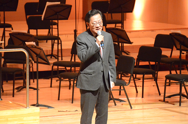 <연주회 시작 전 콘서트 참관에 대한 감사를 표하는 권오흥 단장의 모습>