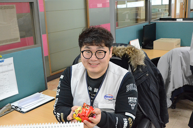 (삼광NEWS)-214() 삼광에서는 발렌타인데이를 맞이하여 임직원들과 즐거움을 나누기 위해 초콜릿 나눔 행사를 진행 하였습니다. 금번 발렌타인데이 행사는 임직원들은 경영지원 사무실을 방문하여 초콜릿과 사탕 등의 간식을 전달받고, 기념사진을 찍으며 발렌타인데이를 기념하였습니다. 또한, 직원들은 바쁜 업무 속에서도 전달받은 간식과 함께, 사무실에서 담소를 나누며 초콜릿보다 달콤한 분위기를 만들어 갔습니다.
