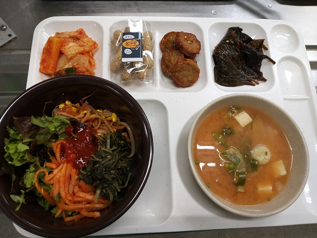 <오토모티브 사업부 특식 산채 나물 비빔밥과 부럼 사진>