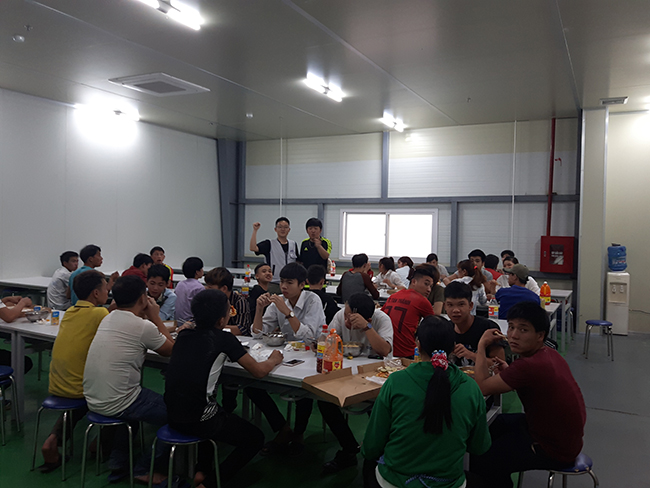 서동현 차장은 긴급 납품 대응에 큰 힘이 되어 준 대산 협력사 임직원들에게 대표이사를 대신하여 격려의 메시지를 전달하고, 피자 15판과 치킨 5마리 특식을 제공 하였습니다. 대산 관리자인 한상현 팀장은 삼광의 격려에 감사 인사를 전하였으며, 삼광과 함께 호흡을 하게 된 것이 참 기쁘다는 소감을 전하고, 수고해 준 대산의 직원들과 함께 즐거운 마음으로 간식을 먹으며, 격려하는 시간을 가졌습니다. 현지 직원들 또한, 삼광 대표이사의 따뜻한 격려에 깊은 감사를 표하였으며, 기념 사진도 촬영하며 일정을 마무리 하였습니다. 현장에 생산을 위해 지원한 서동현 차장은 삼광비나가 한 단계 더 성장하는 데 일조를 할 수 있어 뿌듯 했으며, 향후 지속적으로 성장하는 삼광비나가 되기를 기원한다.”는 소감과 응원의 메시지를 전했습니다.