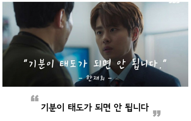 인생을 살다 보면 이러한 경우가 있습니다. 조금 힘 쎈 사람들에게는 굽신 거리고, 약자에게는 한 없이 강자인 척을 하구요. 물론 어느 정도 계급이 있는 회사에서는 서로 간의 규율이 있어야 하는 것은 맞지만, 최소한 정의롭지 못한다면 비굴 하지는 않아야 하는 거 아닐까요? 아무리 서로들 간의 삶의 가치가 다르다고 해도, 인정이 안 되는 부분에 대해경고하는 통쾌한 장면 이었습니다.