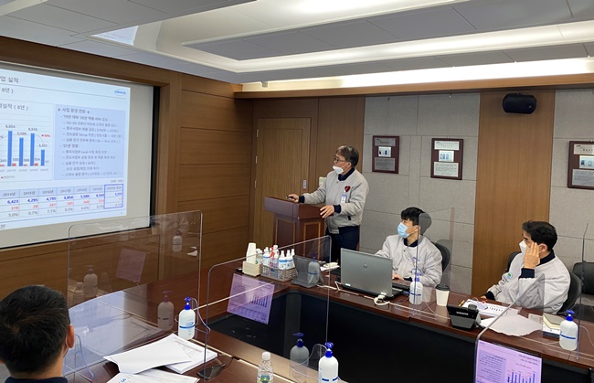 Workshop내용은 2020년 한해를 돌아보며 사업에 대한 평가와 반성, 2021년 각 법인별 전략 수립안 발표를 통해 각오를 다졌으며, 특히, 코로나19가 종식되지 않고 있는 상황에서 급변하는 환경에 대한 리스크 대응 전략과 내년 초 완공을 앞둔 인도 사업부의 조기 안정화,  Global化에 따른 연계활동 및 목표 달성 방향 도출, 신규 사업 전략과 스마트팩토리 구축 등을 토의하는 내용으로 진행되었습니다.