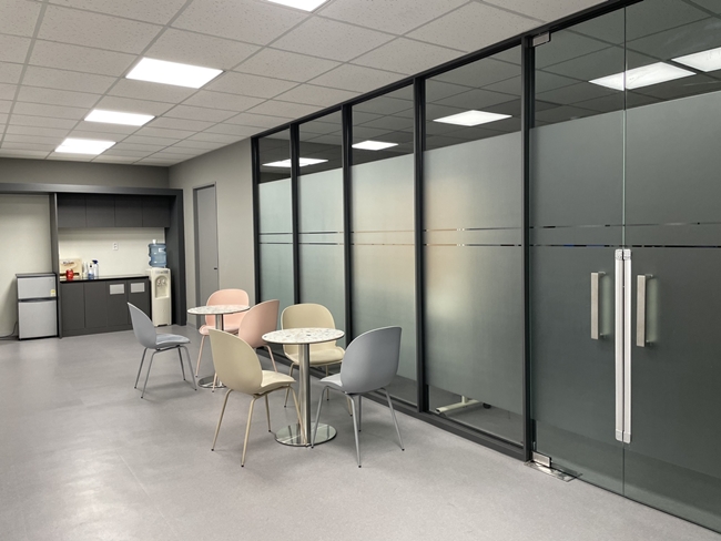 이번에 오픈한 2층 사무실은 가운데 직원들의 업무 공간 외 일반 회의실 3실, 보안회의실 1실, 임원(전무)실, 창고 1실로 구성되어 있으며, 업무 편리성을 위한 효율적인 동선 및 공간을 고려하였고, 쾌적한 업무 및 회의를 위한 사무 공간과 개발 업무 특성상 보안이 중요한 회의를 진행할 수 있는 보안 회의실을 조성하였습니다.