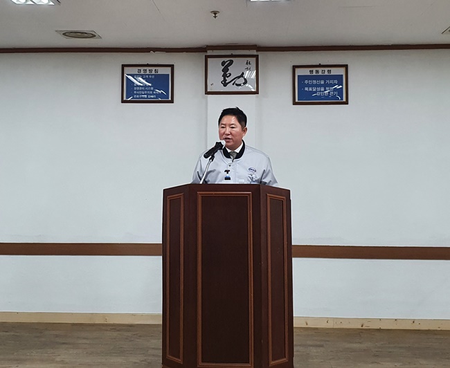 먼저, 요즘 사회, 환경, 안전, 책임경영 등이 지속적으로 대두되고 있는 환경에서 올해부터는 3정 5S 기반에 안전을 추가한 3정 6S를 추진 중에 있으며, 중요한 안전에 대해 강조하며 안전한 사업장을 만들자고 강조했습니다. 기초 없이는 일을 성공할 수 없고, 하더라도 사상누각이 된다며 지금 힘이 들더라도 나중에는 더 큰 성공으로, 튼튼하고 조직적인 시스템을 갖춘 회사로 거듭나게 될 것이라고 강조 했습니다.