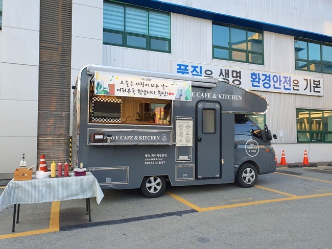 제조지원팀 장은수 대리는 음료와 핫도그를 받아 가며 “회사에 오자마자 커피차가 있어서 깜짝 놀랐다! 핫도그와 음료를 기다리면서 자주 보지 못했던 임직원들도 만나게 되어서 좋았고, 웃으며 하루를 시작하는 것 같다.” 는 소감을 전달했습니다.