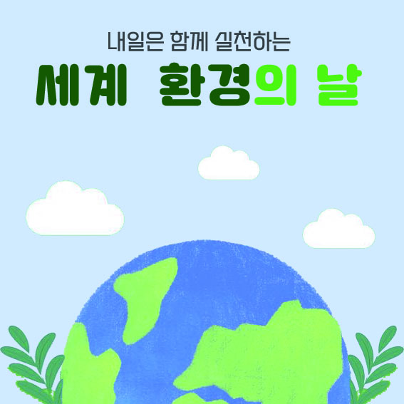 내일 6월 5일(토) 『세계 환경의 날』은 1972년 6월 스웨덴의 스톡홀름에서 열린 ‘유엔인간환경회의’에서 국제사회가 지구환경 보전을 위해 공동 노력을 다짐하며 제정한 세계적인 환경보호의 날입니다.