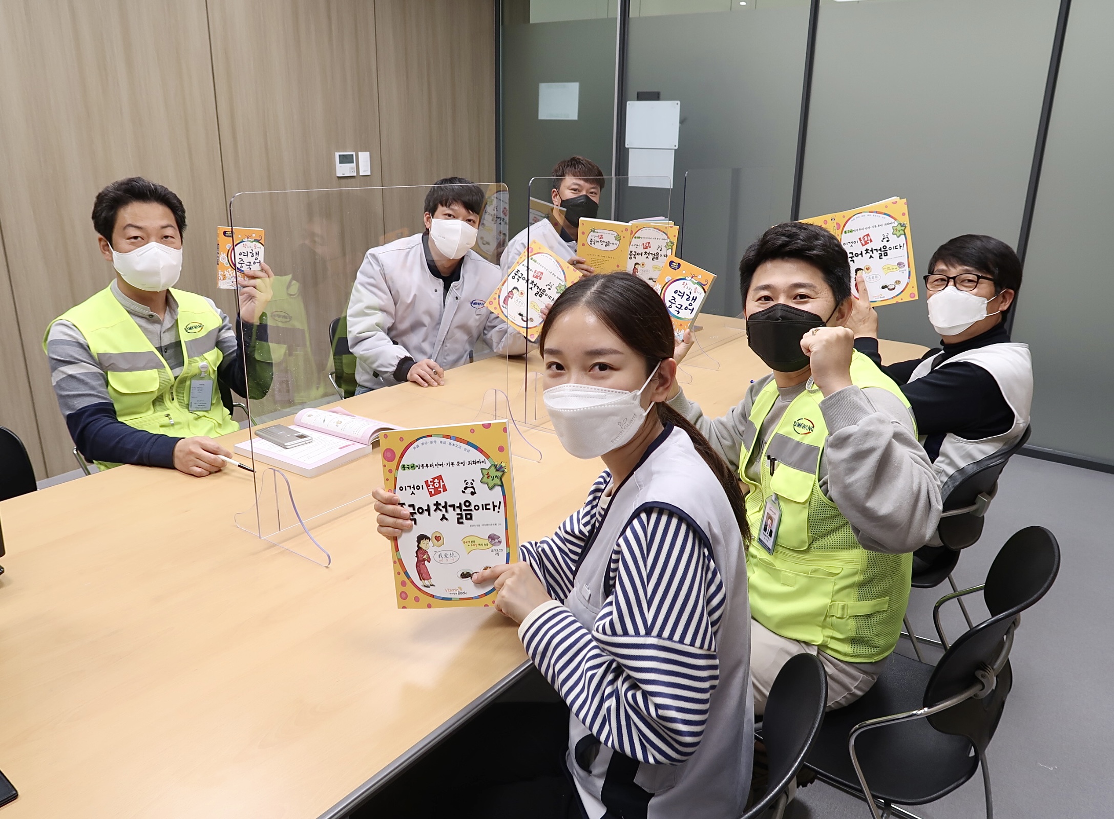 <중국어 교육을 듣는 직원들의 모습>
