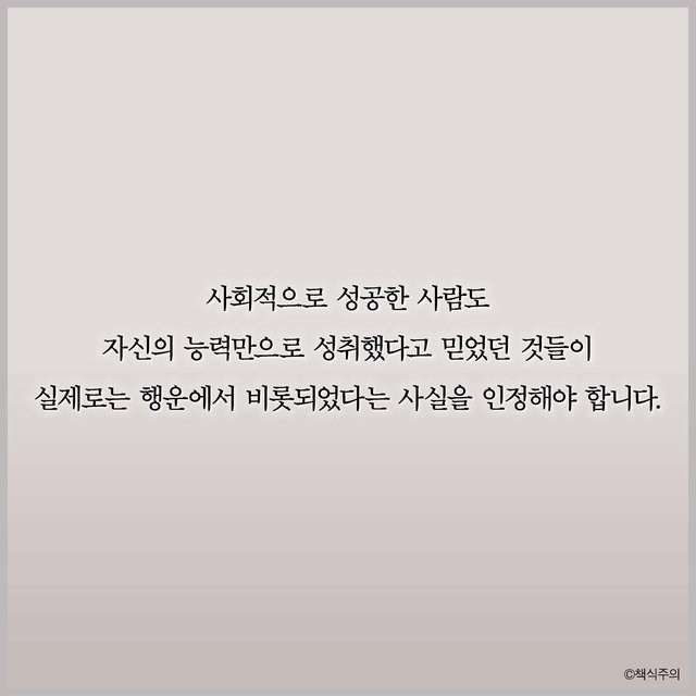 기본적으로 ‘운’이 주는 능력 이상의 성공을 인정하고 겸손한 마인드를 연대하며, 일 자체의 존엄성을 더 가치 있게 바라봐야 하지 않을까요?