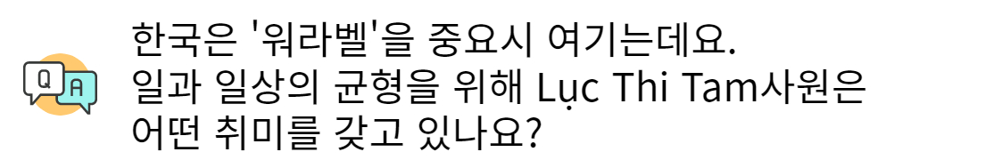 한국의 젊은 세대가 워라벨을 중요시하는 것 처럼 베트남 또한 자신의 개인 시간을 통해 취미 생활이나 자기계발을 하려고 노력하는 편입니다.