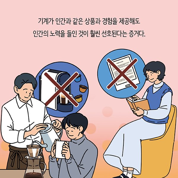 즉 기계가 인간과 같은 상품과 경험을 제공해도 인간의 노력을 들인 것이 훨씬 선호된다는 증거입니다.