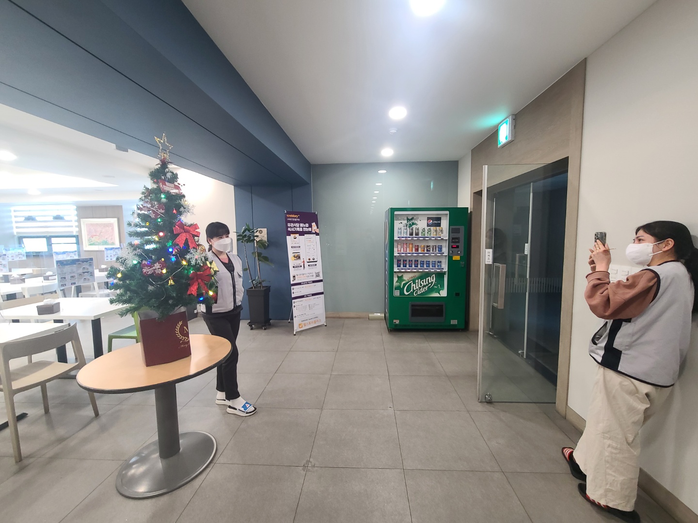 트리 조명은 LED 전등 사용 운영시간 최소화로 에너지 절감 방식으로 운영하고 있으며, 임직원들은 퇴근 꾸며진 트리 앞에서 사진을 촬영하는 연말 분위기를 느끼고 있습니다