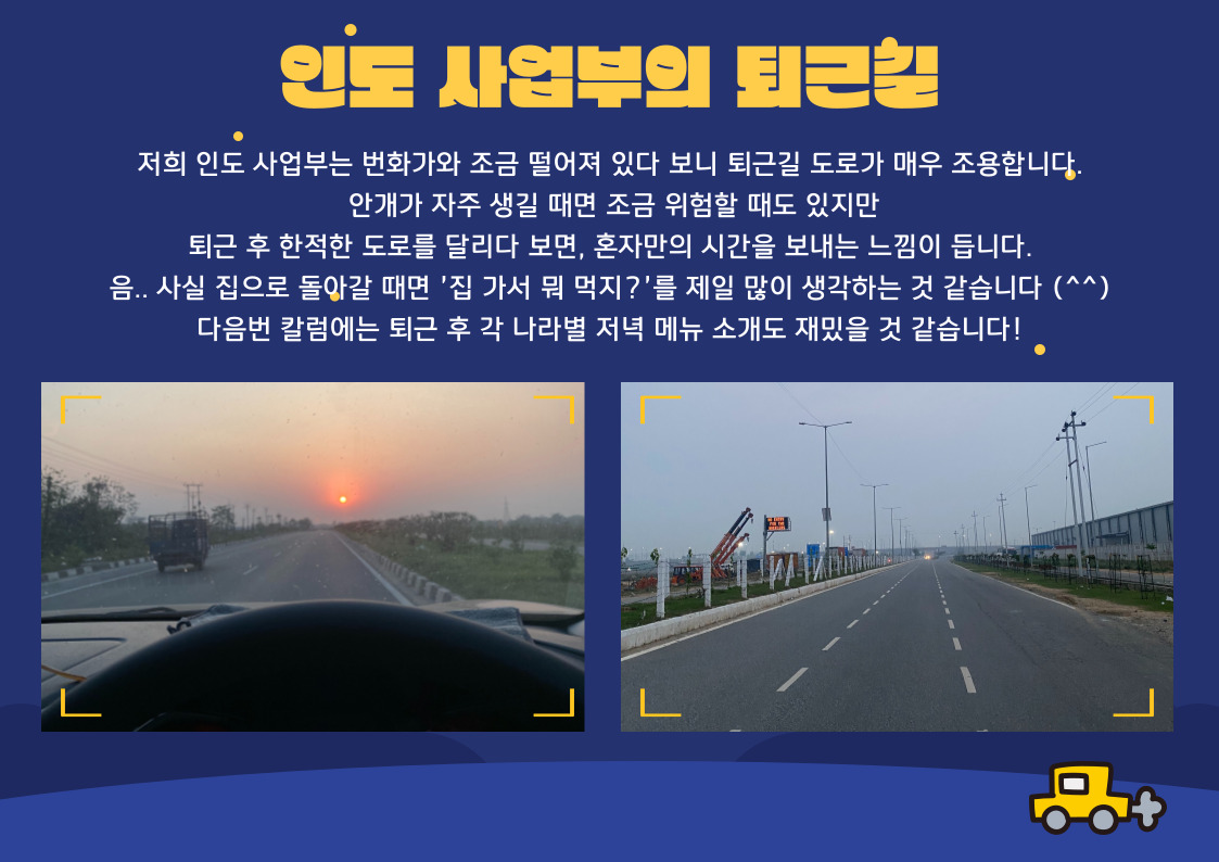 이에 삼광에서는 각 나라의 환경과 특징 및 직원들 간의 간접적인 소통을 증진시키기 위해 각 나라별 직원들의 퇴근길 풍경을 담은 칼럼을 준비하였습니다.