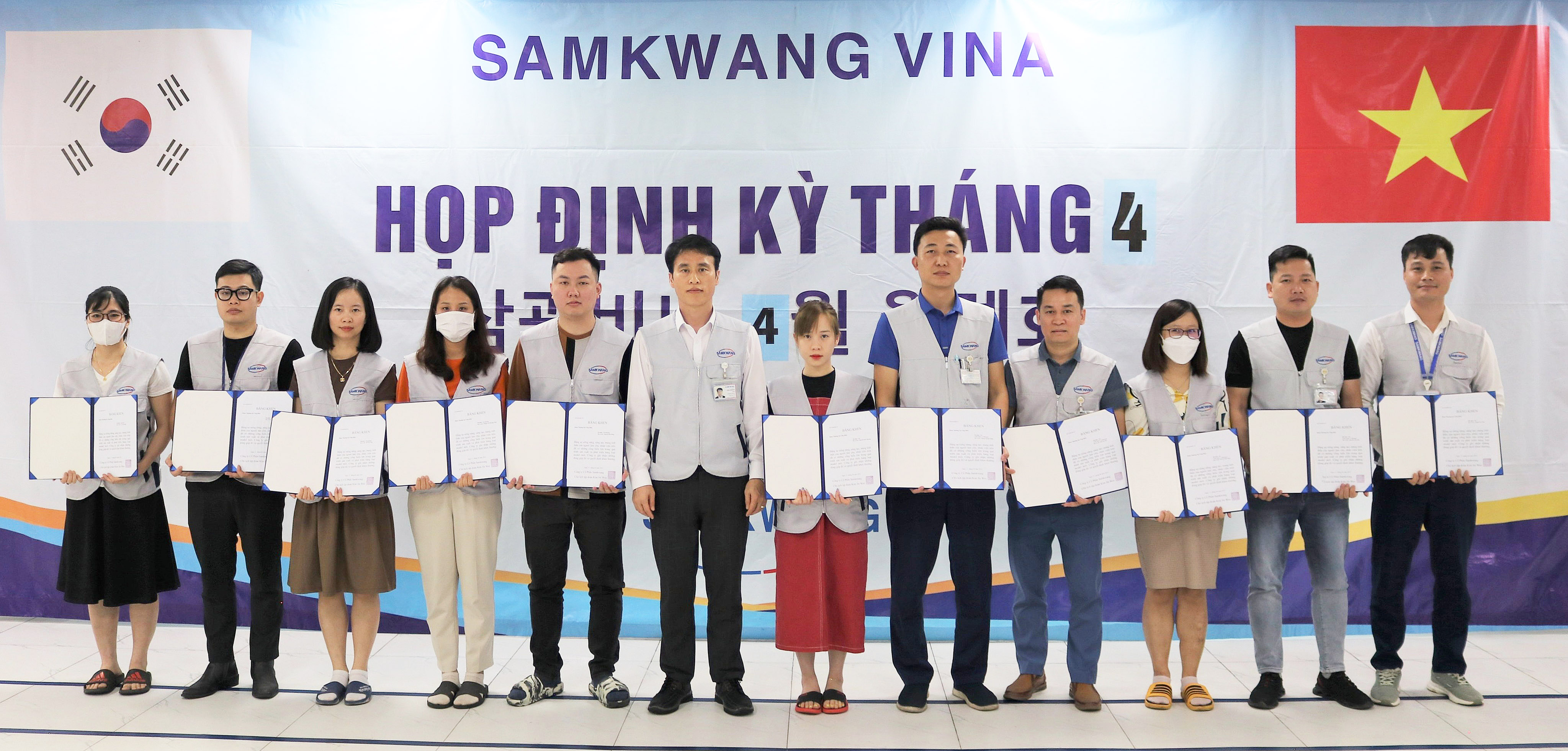 끝으로 송종득 상무는 “금일은 특별히 2023년 신모델 개발과 양산에 공을 기여한 직원들에게 감사의 표시로 작은 선물을 전달하였습니다. 비록 2024년 이맘때쯤 더 큰 선물을 드릴 수 있길 바랍니다. 사장님께서 4월 월례사로 세계로 도약하는 삼광의 비전을 말씀하셨습니다. 베트남 사업부에서 근무하는 모든 임직원들이 자신의 역량을 개발하고 각자 맡은 바 자리에서 최선을 다해 주시길 바랍니다.”라는 말을 전달하였습니다.