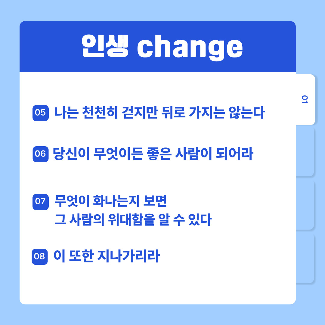 인생을 살며 좋은 마인드를 가지고 있다면 천천히라도 조금씩 나의 인생을 앞으로 나아가게 해줄 것입니다.