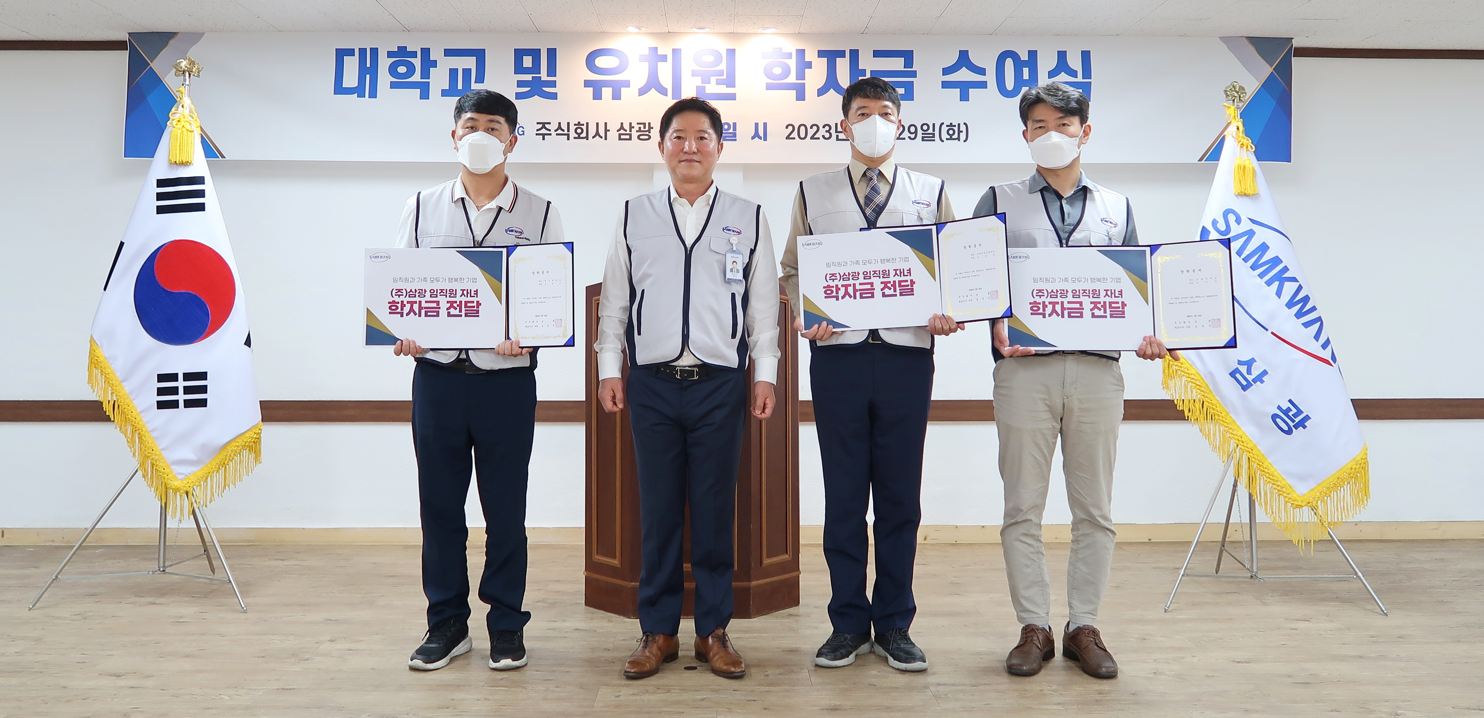 2023년 8월 29일(화), ㈜삼광 본사 강당에서 2023년 임직원 자녀 학자금 및 장학증서 수여식이 진행되었습니다.