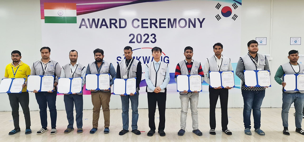 우수 사원 시상은 최우수 9명, 우수 14명, 장려 8명, 근태 최우수상 1명으로 총 32명에게 상장과 부상 총 약 107,000루피를 지급하였습니다.