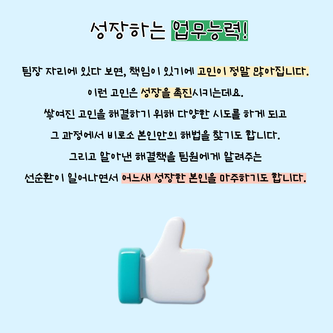 팀원들이 더 잘 되길 바라며 고민하는 팀장님들이 존재하기에 지금의 팀원들이 존재할지도 모릅니다.