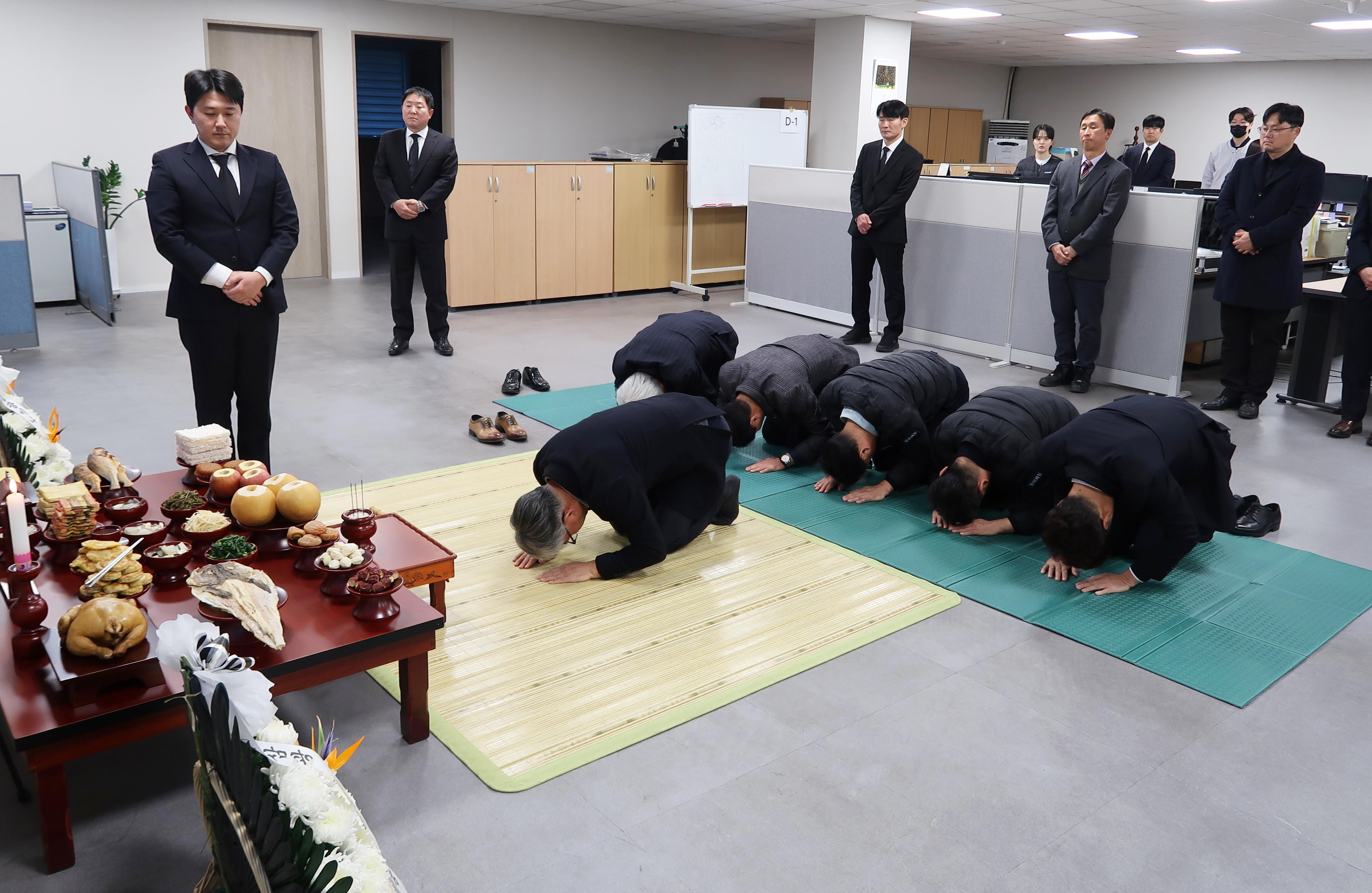 추모식 순서로는 회장님의 간략한 약력 소개를 시작으로 임원 제례, 직원 제례 순으로 진행되었으며, 창사 50주년을 맞이하여 해외 우수 인력으로 한국을 방문한 베트남 및 인도 직원 29명이 제례에 참여하였습니다.