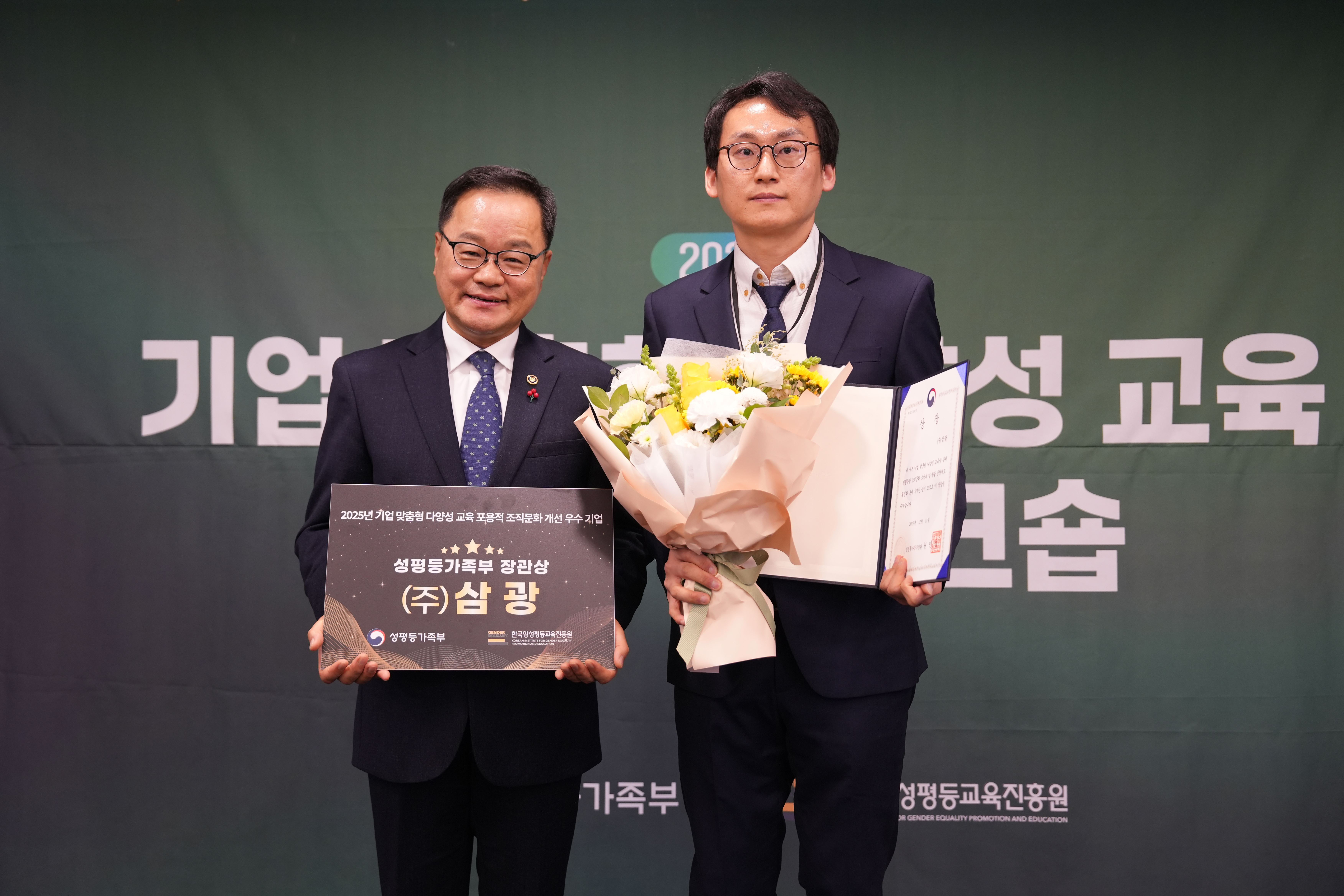 [2025년 12월 11일(목)] ㈜삼광이 서울 한국프레스센터에서 열린 기업 맞춤형 다양성 교육 워크숍에서 성평등가족부 장관상을 수여 받았다.
