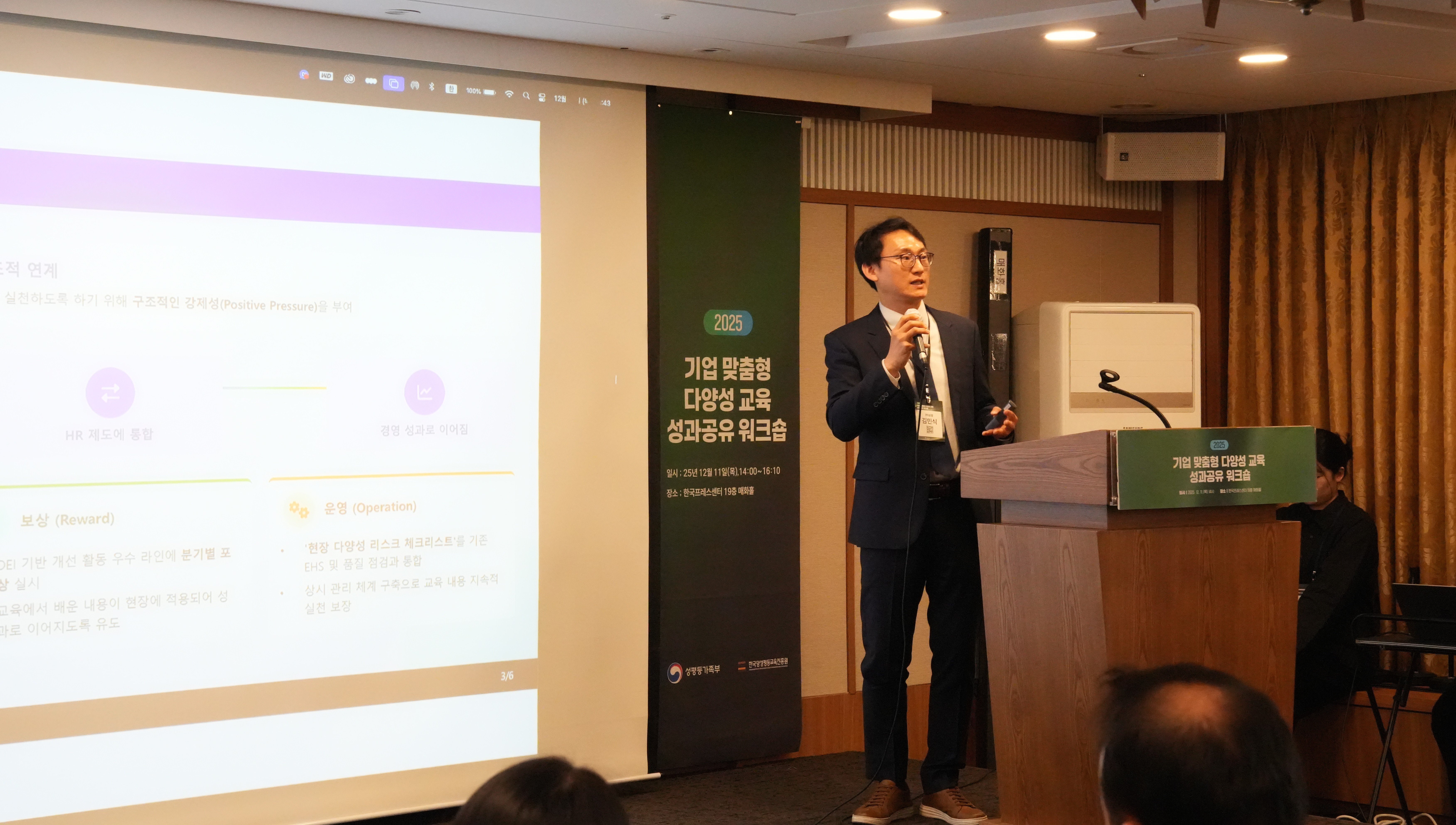 본 행사는 기업의 일·생활 균형 정착과 성평등 기반 조직문화 조성을 목적으로 민간기업 인사·조직관리 담당자 및 임원급을 대상으로 진행되었다.
