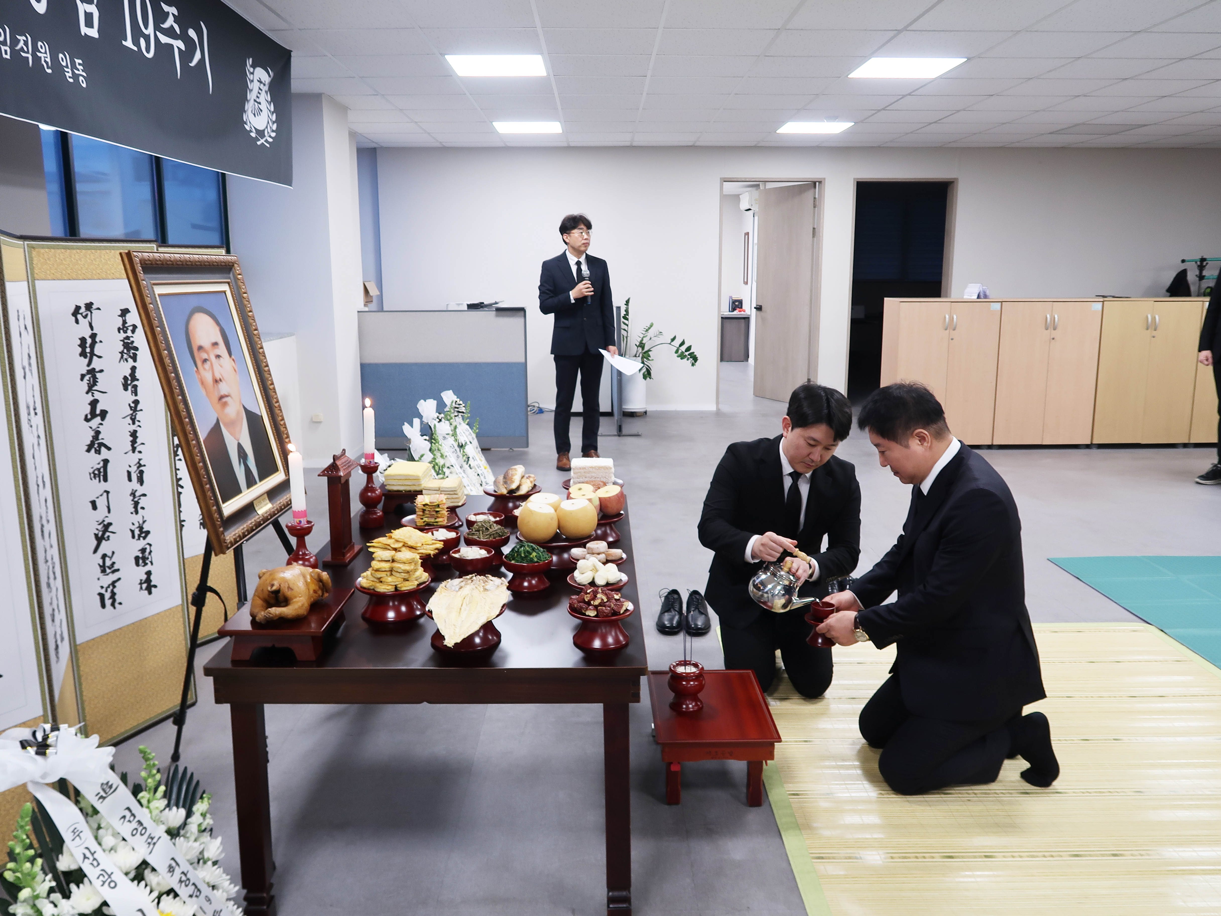 추모식은 회장님의 간략한 약력 소개를 시작으로 임원, 협력사, 직원 제례 순으로 이어졌다.