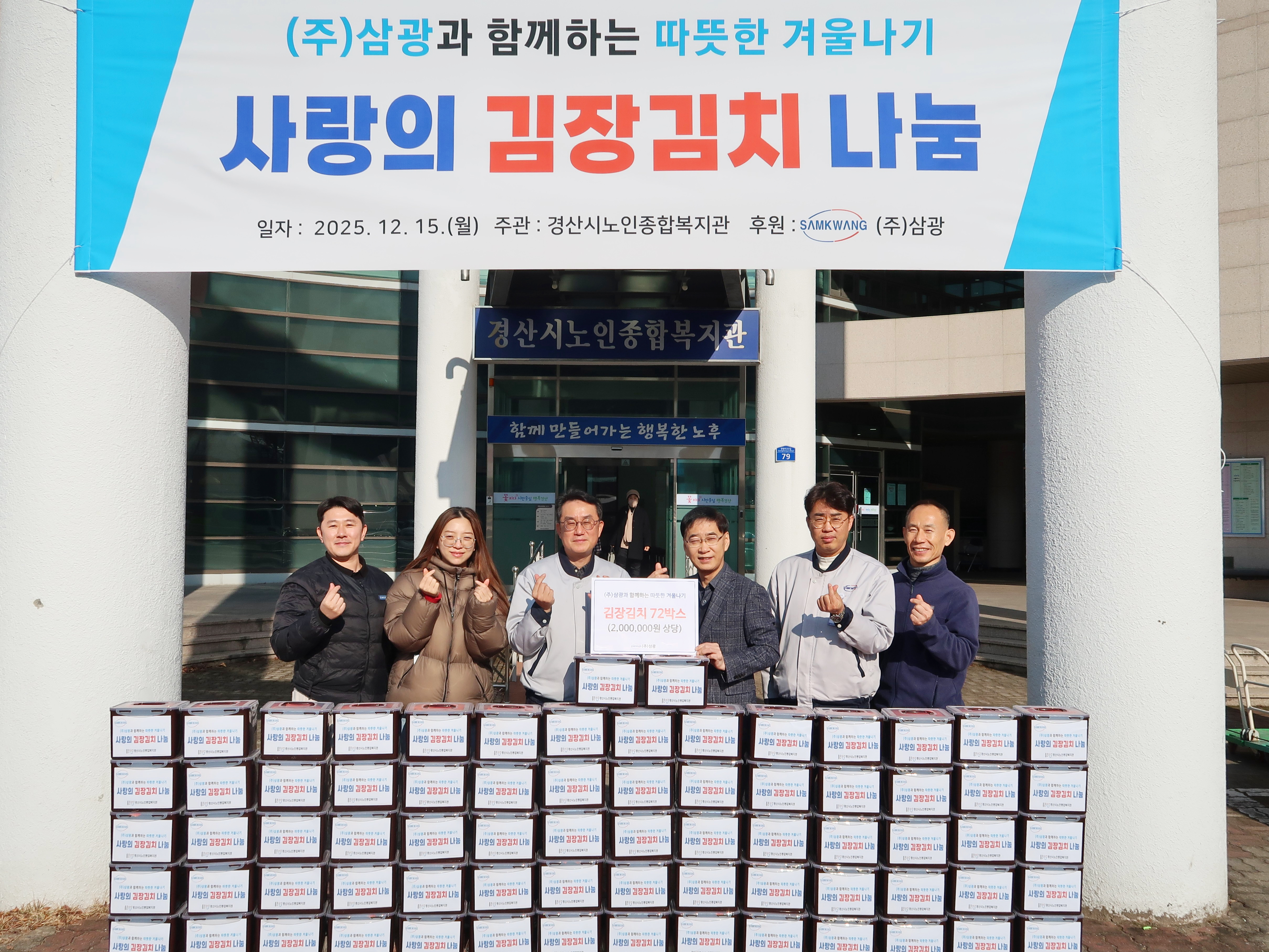[2025년 12월 15일(월)] ㈜삼광이 경산노인종합복지관을 방문해 김장김치 72박스를 후원했다.