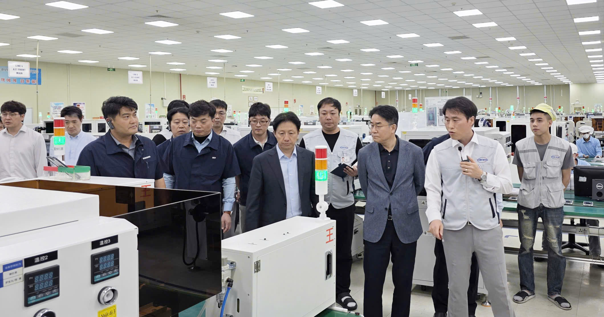 [2026년 3월 11일(수)] 삼광 베트남사업부에 삼성 주요 경영진 및 기술 그룹장들이 방문했다. 이번 방문은 생산 공정의 자동화 수준과 운영 현황을 확인하고 향후 협력 방향을 공유하기 위해 마련됐다. 이날 방문에는 삼성 본사 이병국 부사장, 홍연석 상무(제조기술팀장) 외 6명의 그룹장과 베트남 법인 김이수 부사장(법인장), 박태상 부사장(제조) 외 5명의 그룹장이 참석했으며, 삼광 베트남사업부에서는 송종득 사업부장과 한동권 상무, 각 공정 팀장들이 참석했다. 현황 보고에서는 사출 공정 자동화 현황, 성인화 실적, 자동화 운영 인력 현황, 자체 제작 역량 등에 대한 설명이 이루어졌으며, 이후 실제 생산 라인을 둘러보며 공정 운영 상황과 자동화 설비 운영 상태를 함께 확인하는 시간을 가졌다. 라인 투어에서는 자동화 설비 운영 현황과 생산 환경을 직접 확인하고 현장 의견을 공유하는 시간을 가졌다. 참석자들은 주요 공정을 둘러보며 설비 가동 상태와 공정 운영 상황을 점검했으며, 전반적인 공정 운영과 설비 관리가 안정적으로 이루어지고 있음을 확인했다. 특히 공정 자동화 측면에서 효율성과 안정성을 확보하고 있으며, 설비 및 라인 운영에서도 경쟁력을 갖추고 있는 것으로 평가됐다. 또한 생산 인프라와 작업 환경 관리 역시 체계적으로 이루어지고 있는 것으로 나타났다. 삼광 베트남사업부는 앞으로도 생산 공정 경쟁력 강화와 품질 안정화를 통해 글로벌 고객사와의 협력을 지속적으로 확대해 나갈 계획이다.