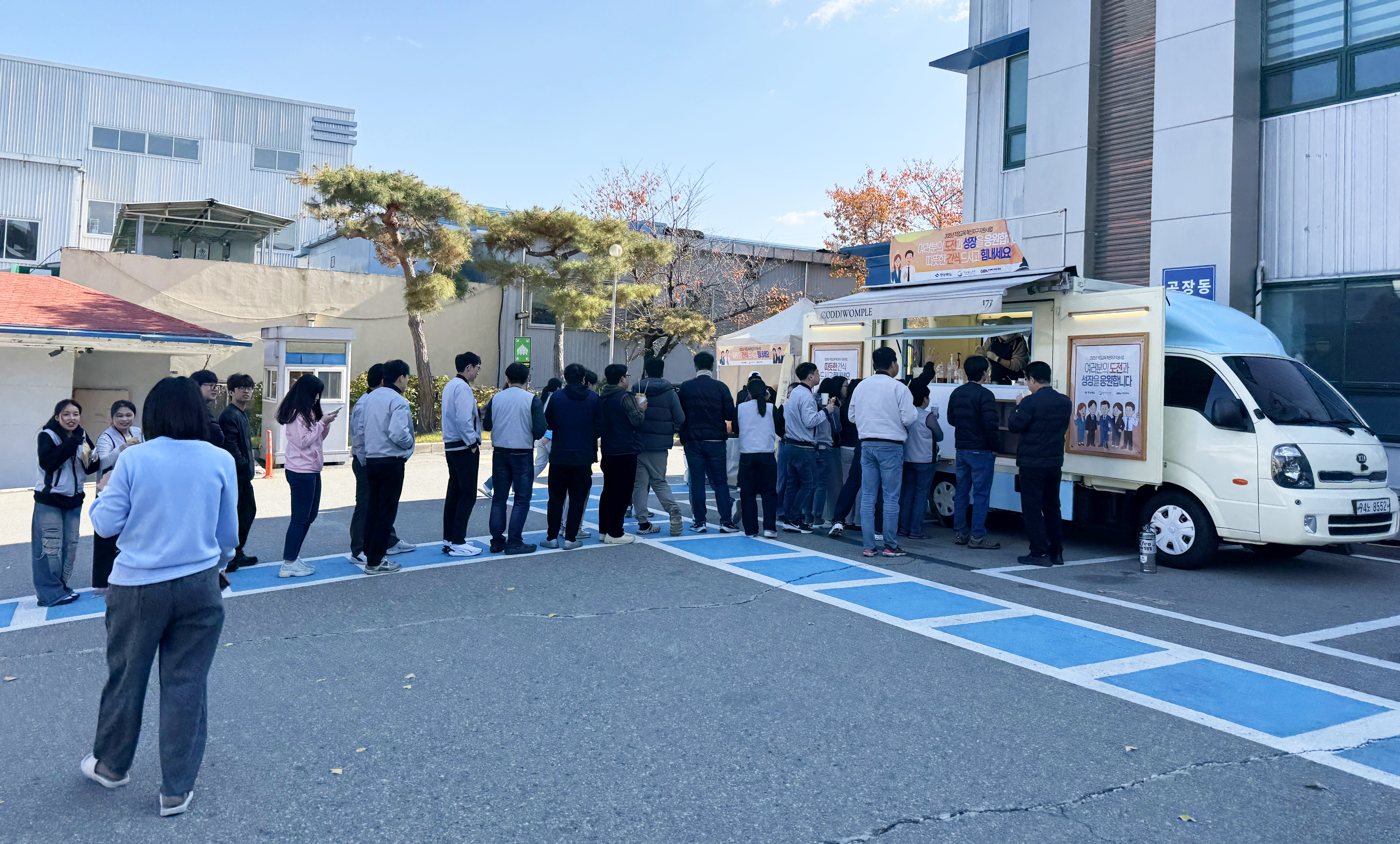 [Tuesday, November 18, 2025] Samkwang Co., Ltd. held a snack sharing event at its headquarters to cheer on employees participating in the Vocational Education Innovation District Support Project, who are growing into the company's core technical workforce. The Vocational Education Innovation District Support Project is led by Gyeongsangbuk-do Province and the Gyeongsangbuk-do Office of Education, a program promoting the recruitment and development of high school graduate technical talent. Samkwang has participated in this project since 2023, consistently collaborating by providing field-centered practical experience to outstanding technical talent within the region. Students currently participating in the Vocational Education Innovation District program are from Gyeongbuk Machinery Master High School, Pohang Iron and Steel Industrial High School, Pohang Heunghae Industrial High School, Daegu Industrial High School, and Uiseong Unitech High School. They are working in Samkwang's Manufacturing Team MCT Part, Injection Part, Assembly Part, and Equipment Maintenance Part. Employees utilized the snack booth during their lunch break, receiving oden, fish-shaped cakes, and various beverages while expressing gratitude and encouragement to the students participating in the Vocational Education Innovation District support project. A Samkwang representative stated, “Students hired through the Regional Innovation District project are growing into vital technical personnel for the company. We will continue to support them so they can adapt stably and demonstrate their capabilities,” adding, “We will strive to cultivate future technical talent based on industry-academic cooperation linked with the local community.” Samkwang plans to continue various educational support programs and industry-academic cooperation activities with the goal of being a company that grows together with the local community.